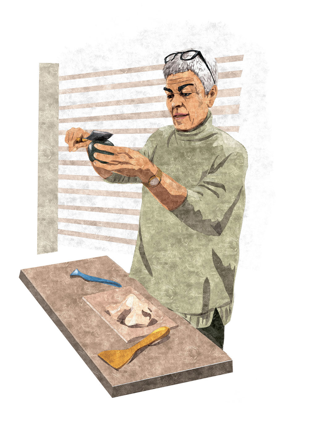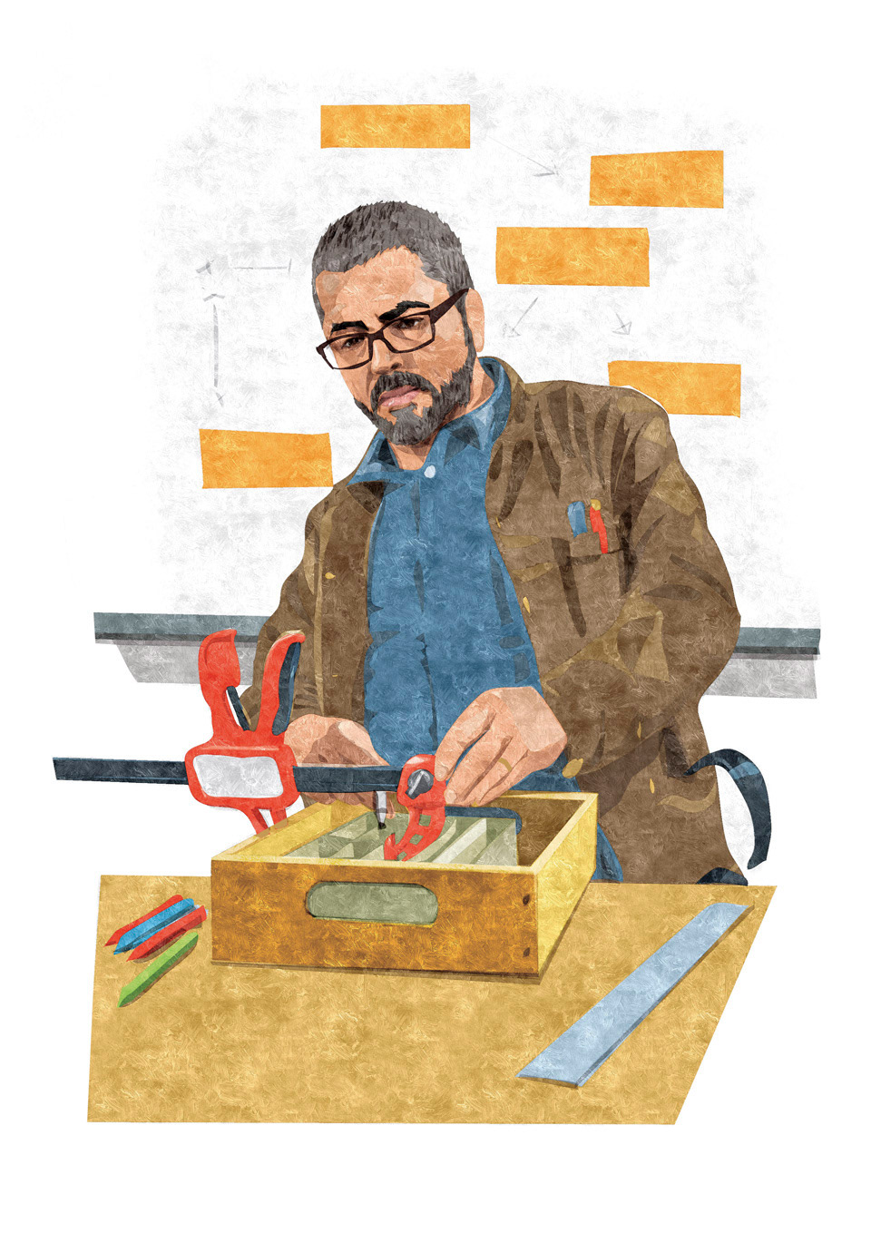 1000 Dinge features portraits of Werkteachers at their Wirkungsstätten. Samuel Bucheli created the illustrations based on fotographs. Published in Werkspuren, a Swiss periodical for teachers of creative subjects.