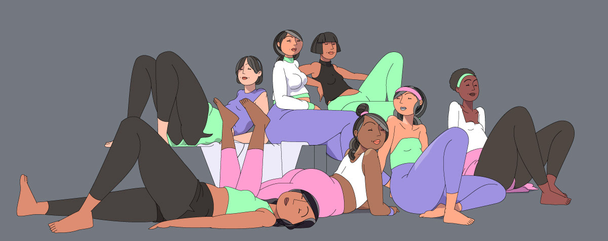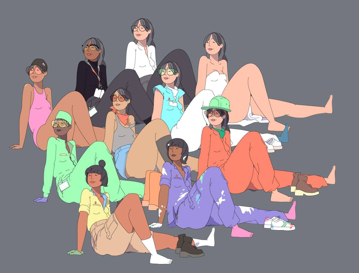 An ever growing crowd of illustrations of women in relaxing poses. The work helps me explore line art and coloring features in adobe illustrator in a fun way.